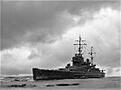 The cruiser Dorsetshire is ordered to finish Bismarck off with torpedoes. Two are fired at her starboard side and two at her port. Such was the lean to port that one torpedo actually explodes on Bismarck's superstructure. Aided by her crew who are ordered to opening sea cocks to quicken her sinking, Bismarck settles by the stern and capsizes - Her flag still flying.....