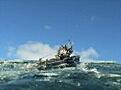Bismarck is a mess. Her port side is a distorted mass of twisted metal. Thick oily smoke is starting to bellow from her innards. Already 'Dora' turret is underwater, to be quickly followed by Caesar.