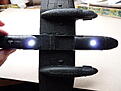 The silicone blobs are the two LED spotlights. The tiny switch is hanging loose at the bottom. Once the lights are switched on, I will just tuck this up into the fuselage.