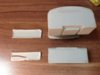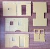 It has white metal springs, drive shafts and the steering mechanism. I also got a sheet of white plastic and one of clear plastic for the Kofferaufbau windows. Next, I opened up the Kofferaufbau parts to check them out,