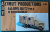 I know you all have been waiting with baited breath for an update. Ok, this is an update so to speak, but as far as big progress it ain't!!! You know I have been scratching a 4WD version of the Opel Blitz 3ton truck for my T-Stoff tanker. There is a story behind this and it began in the first days of May. I saw a kit in evilbay that would allow me to do the conversion in resin and not use the Plus Model resin kit. It was from ADV Azimut (my favorite) and looked like this,