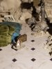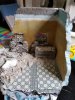 Larger building has ground floor restaurant, next to the main room I recon there would be a kitchen, tiles are reality in -scale, the plumping is...I can't remember, sink and stove is royalmodel. upper pipe need some brackets, there will be shelves on the side and a stove tossed about in the rubble .