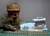 I then started on landscaping it all. Now I use landscaping as a means to try new techniques. First up I cast some rocks using the tin foil technique. Came out OK but I will do better next time. Inspired by my first little tree I decided to sculpt something bigger. Again from magic sculpt with a little natural product sourced from the garden. Still quite a bit of gardening to go but it's on the way.