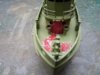 Anyway, here is the boat so far. Yesterday I brushed on an all over coat of green primer. Good to see the back of that awful red plastic!