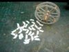 Both sides completed, strengthened and the axle fitted. Notice the inner, all card side of the wheel.