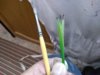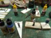 Now comes the Bullrush head, taking an armour brown I dipped the heads into a small amount of paint, again in a milk carton lid .