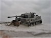 Luckily, I had a wrecked Tiger I in my spares drawer, so I whitewashed over the original camo., dug a hole in the snow and in it went...