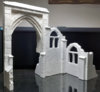 With the white primer it roughly looks like one building. I'll be adding a water feature from Italeri in the corner and perhaps a Firefly parked just under the arch.