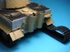 The pre-shadow makes the Tiger look like it's in Winter camo. More shadow was applied to the running gear and engine vents. The vents were covered with wire mesh and plastic strip. The mesh is a large piece of brass which I picked up from a local hardware store. You will notice I don't use PE or after market stuff and basically the finish is purely for dio purposes.