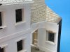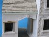 Some of the troops will be hiding here. The right window is not plastered yet showing the card and balsa.