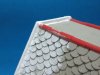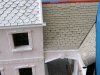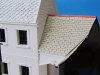 The chimney pipes were made from the largest hollowed clear rod I could find and glued it down with poly glue. You can see I really gave it a good helping of it. The chimney base was a block of plastered polystyrene.