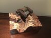 The sides of the base are covered with thin bur walnut wood veneer, I like the random effect of the grain.