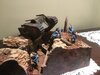 A little more progress - the fourth figure, approaching along what I think could be a communication trench. In addition I have taken onboard Laurie's comment and added a broken tree (thanks Laurie). I am pleased with it, it adds another aspect of the Western Front and it does improve the composition. The ground work around it needs some work but that can be for tonight, along with another figure - only two more to go!