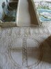 The other piles are bits of tissue paper, clear plastic for glass, loose paper tiles and coffee stirrer rafters.