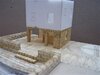 Although not very distinct, and because of the change in the building design, I've had to cobble and paint the area inside the arches that was originally hidden and staying white.
