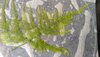 In removing these very light and easily twisted up I decided to scoop them up out of the water by sliding either a fresh sheet of kitchen roll or the wet greaseproof paper underneath them while they floated .Putting the tray of divided ferns in the sink I ran clean water through until there was very little trace of any green.