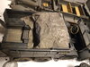 It looks like a proper old thick canvas lorry tarp, a bit filthy and stiff.