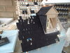 The base is the normal blue foam as are the building walls. I had a go at making some wattle and dorb which hopefully when painted will look ok. I still have some more to make. The roof will be pretty much ruined but the dormer will still be standing. The rafters are not secured yet to allow me to work on the walls.
