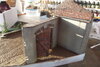 A little bit more done. The down pipe is made from ally tube and the gutter from pewter as are the fittings. This was then sprayed grey black and rusted with standard rust pigments.