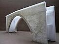 This is my first attempt. I even scribed the stonework onto one of the boards. Luckily, I only need to detail one side of the bridge. I then discovered the bridge arches I'd cut were way off. I tried to correct it, but to no avail.