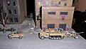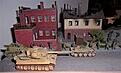 1/87 scale Dio of Herpa, WSW, & ROCO models representing Heer hvy weapons elements on the march passing infantry taking defensive positions.