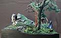 Unfortunately it also means that all three face in to the centre of the piece - there's no way to see their faces easily, even one at a time, much less all together. This means there's no comfortable primary view - hopeless! I mean, by all means make it interesting from multiple angles, but the lack of one dominant viewpoint is SO frustrating! Still, I learned a huge amount in its construction (chiefly that I should've reined back my ambitions for a first try). I'll put a few more images in the Completed dioramas section.