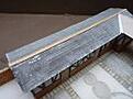 Paper 'slates' and a bit of gash coloured card for the ridge tiles. The valley is made of paper strips.