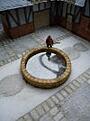Made from a scrap strip of foam board. Suitable scribed and wrapped around part of a clear plastic food container lid and then painted with kiddies paints. Finally, I added the crud on the pond bottom using some 'Sweepings'. Then stuck the thing to the base.