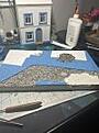 Thank you, everyone. I’ve been able to spend a little time on the next steps of the base. The voids in the built up pavement are for a storm drain and manhole cover. And now the madness shall begin with the cobblestones.… Yes, real stones. Found them on a beach, and they struck me to being suitable to add more interest to the cobblestone road.