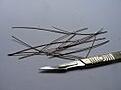 I first painted some ordinary thin paper and then once dry, I cut it into very thin slivers. These I will stick on to the plastic.