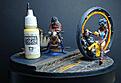 I've already got into difficulty with the hoverbike. I got a half-decent finish with the airbrush, but failed to seal it with varnish. As a result, I've scraped away patches of the microns-thin layer of paint while blocking in her jeans and jacket. On reflection, I don't think the paint job was up to scratch (pun intended), so I'm now pondering how to proceed with it.