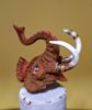 Work continues on this fantastic little piece. All shading and highlighting has been completed on his armour. Head has now been attached along with his left hand/paw. Banner has been painted and highlights and shadows applied, need to paint in a suitable Japanese motif. Sword blade needs painting, and his side skirts added. Then work on the base can begin.