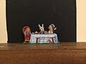 two from an Alice in Wonderland set; the Mad Hatter's tea party, and a playing card guard.