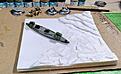 Then added some texture, to what will be the ground, beach, landing area, a mix of brown and sand pigments and some pva.