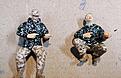 Painted the faces today, small tashes on both, as per the box art, and just some black eyes, might tidy it up a bit later and figured not weathered yet. I intend to have their boots and the bottom section of their trousers to be darker, wet, muddy after coming ashore from the kayak...