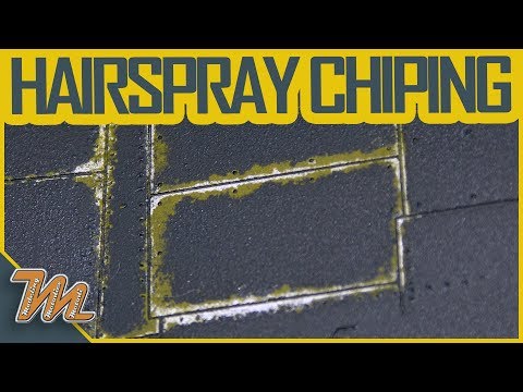 Its a technique used mainly by military modellers, you spray a base coat, that you want to see show through the final coat, metal - rust shades, etc, then you spray hairspray over the area to be chipped, scratched. Let it dry then airbrush on the top coat, let it all dry and then if you use a stiff brush loaded with water and start gently scrubbing you activate the hairspray which removed the top layer revealing the base coat.