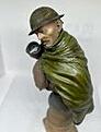 Got his hands painted along with the receiver. Rest of the figure has had the base coats and shadows airbrushed in place. His hand, left arm, head and helmet are just blue tacked in place. His helmet had the hairspray treatment then various oils applied and raw umber washes