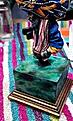 And the edges of the main block were too bright after marbling, so I very roughly painted them the darkest green, with the intention of blending it in later. But I like way way it suggests the whole thing might be made of painted wood, not marble and metal.