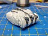 Whatever the instructions tell you, a simple straight cross belt will not sit correctly, especially on a figure as large as this. I don’t know if they are actually shaped in real life or if it’s just that they wear into shape over time and use. But anyway I need to define the correct shape and this is a technique I learned in art school.