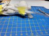I taped the sabre-briquet& bayonet into position, according to a re-enactor pic, rather than the instructions. Incidentally, this is a bit brutalistic and will need refining later on. I cut the belt from paper, over length, and in fact, wider than the instructions , again referring to re-enactor pics.