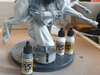 Funny you said that about Tamiya, I'm not sure if they've changed how they make paints in general but I've given up on them and now have a box of them to shift sometime in the future. Have been playing around with Vallejo model color/air, following recommendations, and found them so much better plus they don't stink, the dogs used to sneeze when in my work room, but not any more.For some reason the grey tamiya primer just didnt want to stick, came off in places - and thats after a bath in soapy water, rinsed and left to air dry. this Citadel primer just covers anything. Most if not all will be covered with the first dark grey coat of paint misted on the horse and built up from there.Comment