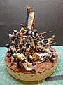 I applied the brown mix with a small palette knife to get in around the pins, and what a pointless exercise that was. Next time I will just shove the pins in afterwards. It now looked like a fetishist chocolate cake.
