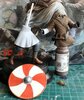 I reckon the pot helmet, and because Vikings are generally depicted with an axe, I'm going to use the sword, helpfully ICM have provided an empty scabbard for this option. Several arrows are provided, either to stick in his shield, or maybe in the base, by his feet.
