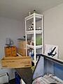 The cheap IKEA shelves hold the thinners, cleaners etc and the wooden box's weathering stuff. Will no doubt continue to move stuff about for the next few yrs! The toner box makes an ideal U Boat dust cover!!Comment