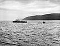 A Hunt Class Destroyer ORP Krakowiak towing U-2337 out to be scuttled