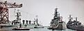 Kure Harbour, Fujimi 1/700 IJN Haruna, IJN Matsu, Tamiya 1/700 IJN Kuma, IJN Hatsuyuki, Harbour Set, Tugboat Set, 1/700 Goldmedal and Eduard Figures.