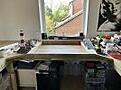 Thank you guys, here are some pictures of the base for my layout. It looks a little cluttered as I have to move stuff as I go round, but soon I will be planning track and building the lock and beach basics