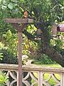 The parent looking on. The adult pair are so tame now, I rattle the food tub and they swoop down from our trees, landing on the feed table whilst I'm sprinkling stuff on it. Not phased one bit. It's great!