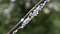 In most cases it's spread in a fine coat over the backs of the leaves and is yellower in colour - I though it might be eggs but I don't think so. In other places it's in whiter fluffier clumps.