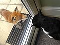 Wifey was enjoying a peaceful Saturday lunch when Wormwood, the stray who became my daughter's cat, had a bit of a stand-off with a young fox through the kitchen door.....